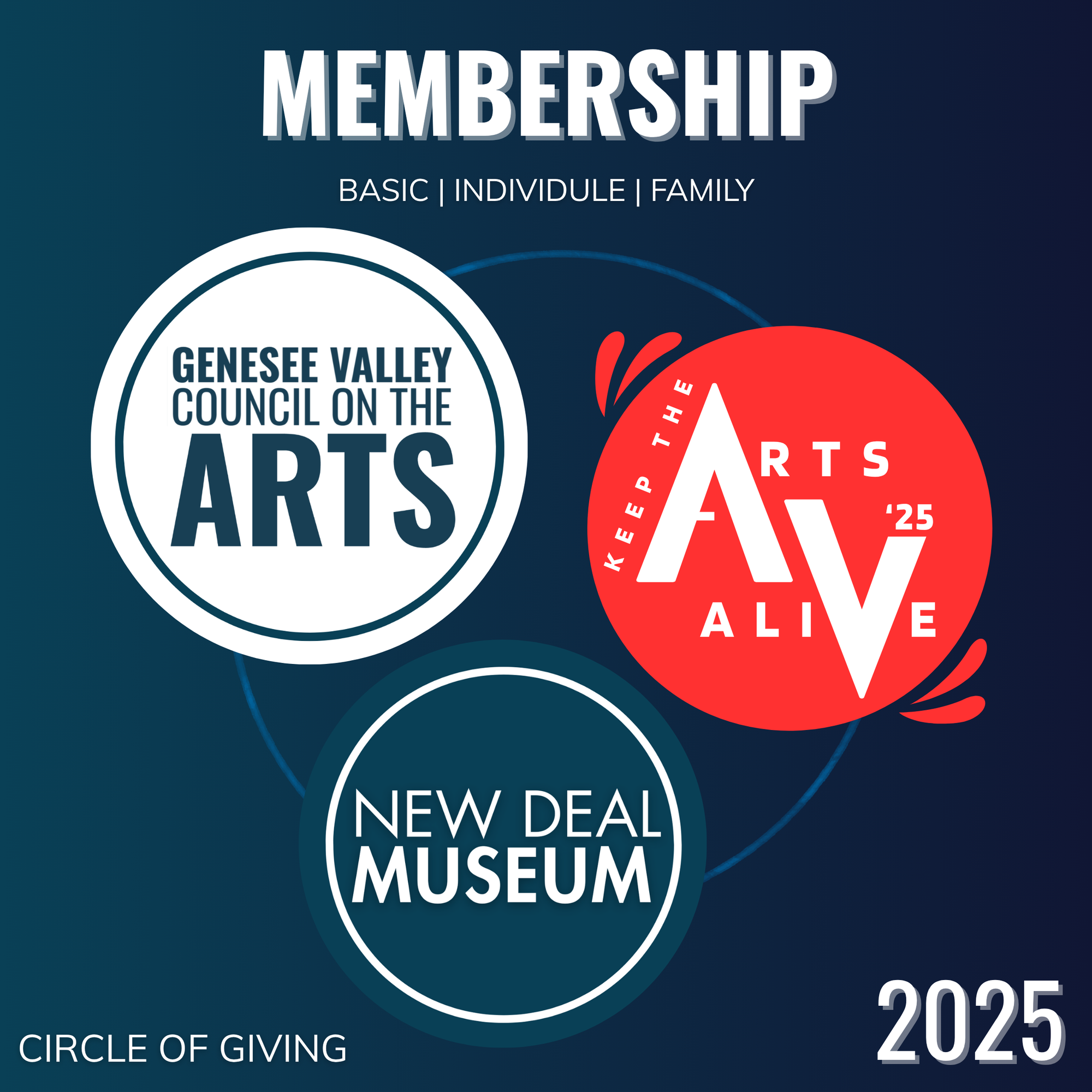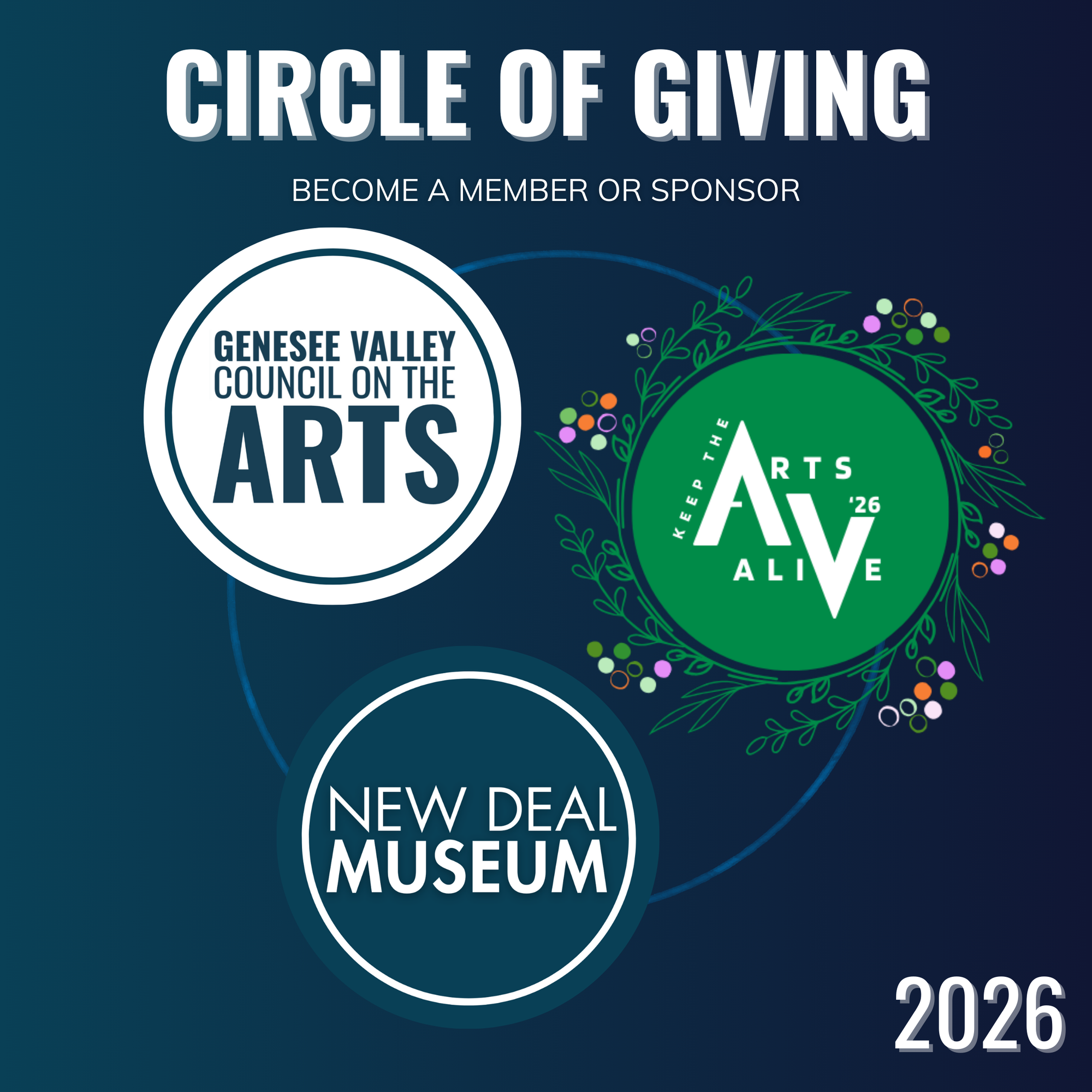 Starting in 2026, our Membership is joining our Circles of Giving! Our organization relies on your generous support to offer year round arts and cultural programming. Thank you for helping us to Keeping the Arts Alive! Follow the Link below for more information regarding membership perks, and sponsorship recognition. We are looking forward to another year of innovative events, and community outreach!
